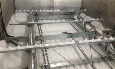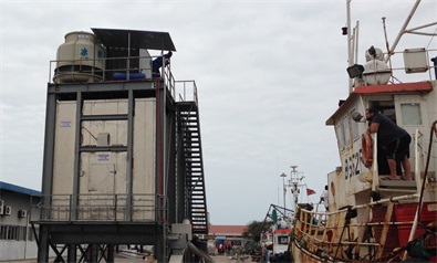 莫桑比克40噸40噸片冰耙式自動儲冰系統(tǒng)用于遠(yuǎn)航捕撈保鮮供冰??蛻羰钱?dāng)?shù)刈畲蟮膹氖逻h(yuǎn)洋捕撈的公司之一,因?yàn)樵黾恿烁嗟拇?,所以他們需要更多的冰。因此,他們購買20噸集裝箱式片冰機(jī)和40噸儲冰耙式輸出系統(tǒng)。該系統(tǒng)直接安裝在港口岸邊,船只靠岸后,可通過稱重螺桿系統(tǒng),自動稱重出冰,所有過程無需人工手動操作,全部由自動控制系統(tǒng)完成,實(shí)現(xiàn)了高度自動化。